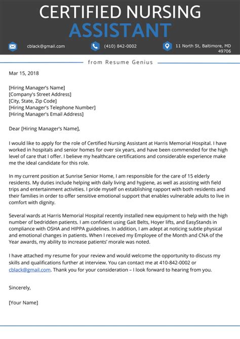 Whenever a job seeker applies for a nursing assistant role in a new company, he/she must signal their value through multiple an engaging nursing assistant cover letter can help you grab an employer's attention, which can lead to landing an interview for a job.